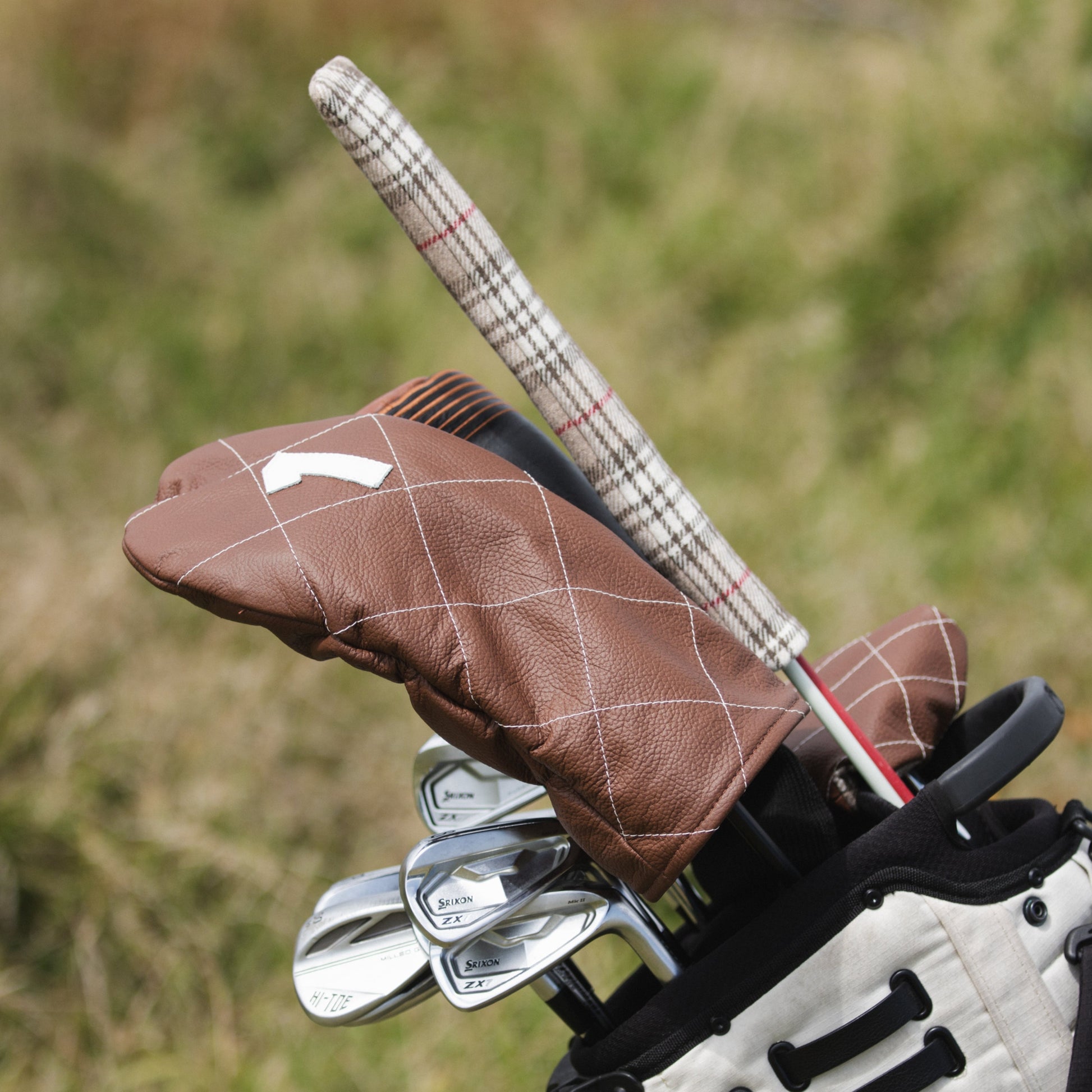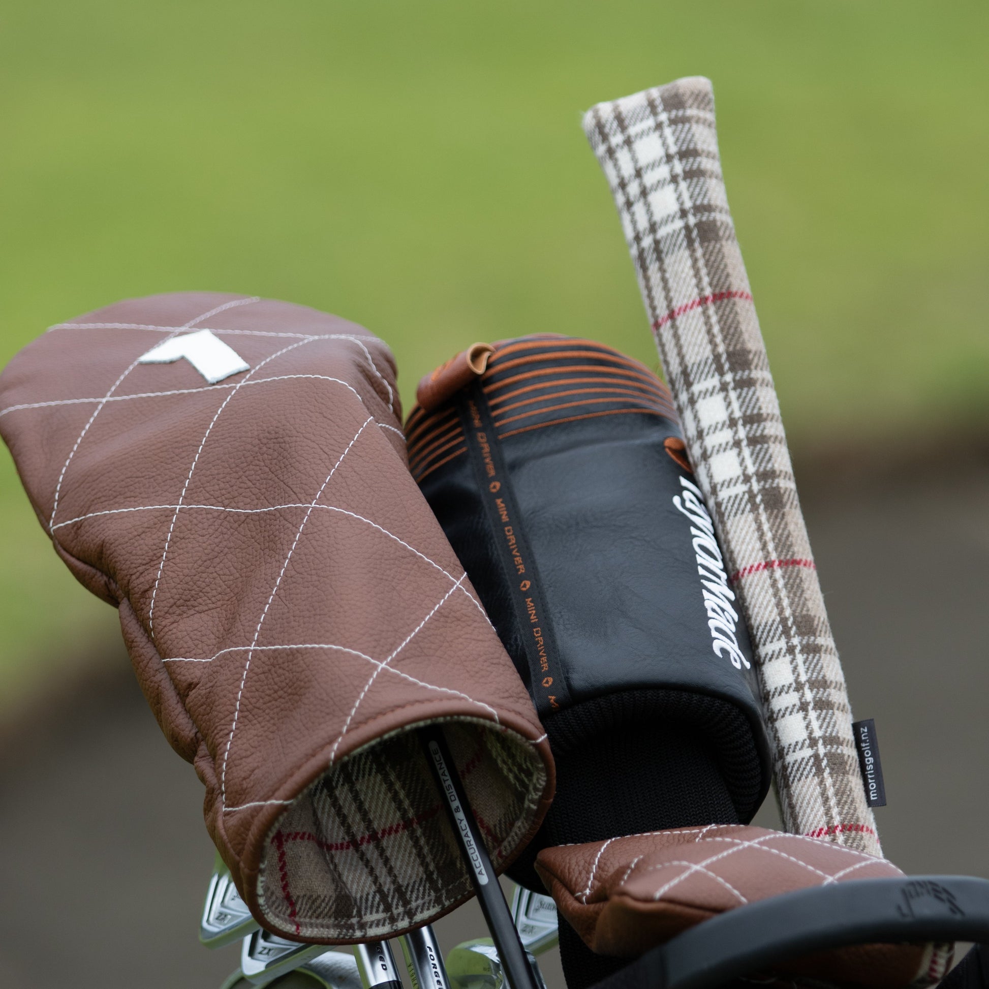 Round out your golf bag with this premium-quality handcrafted Morris Golf driver cover. A genuine leather exterior and cream-plaided wool interior will keep the big dog protected while ensuring your bag is the envy of your playing partners.