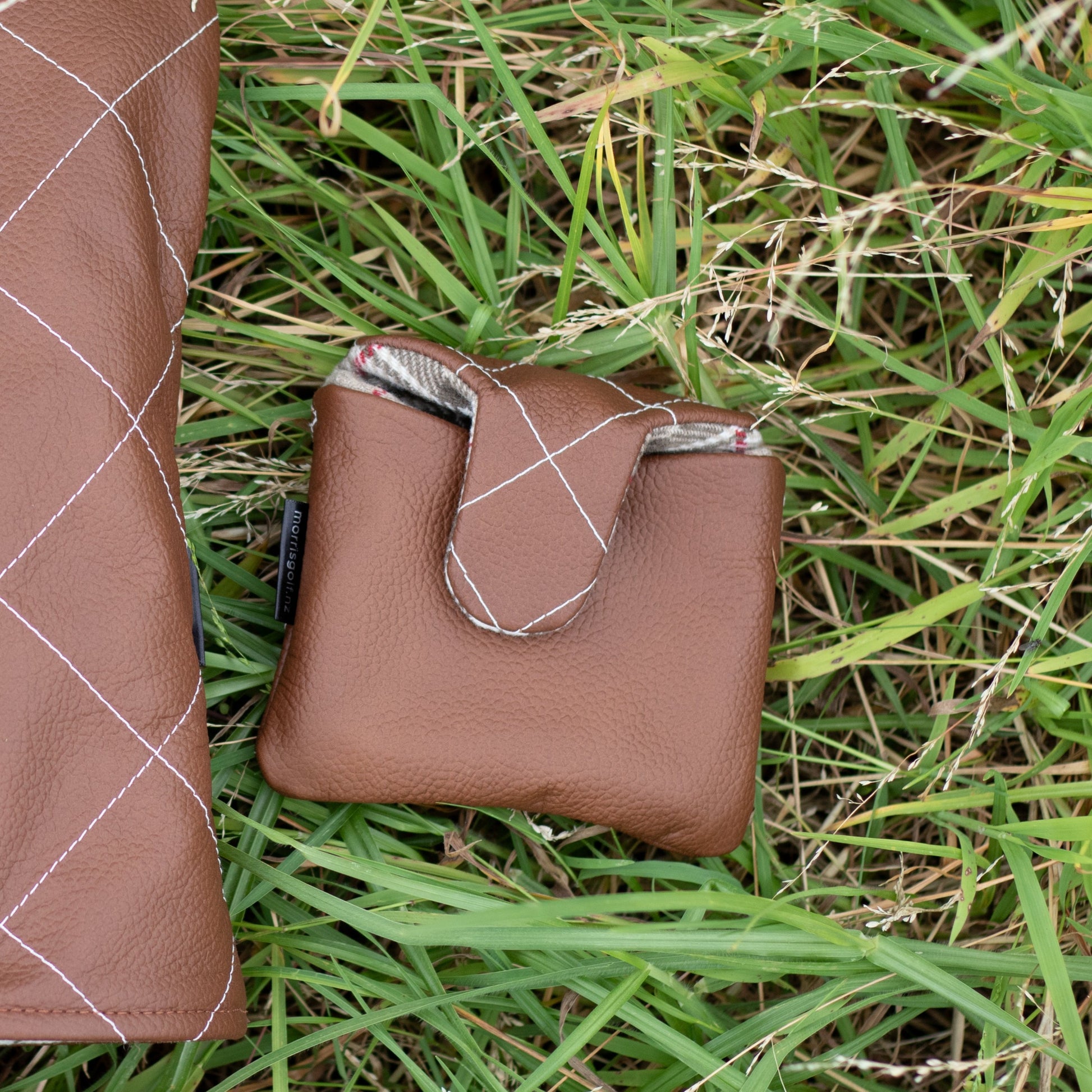 If putting is all about confidence, then you can't afford not to have this mallet cover in your bag. With a genuine leather exterior, cream-plaided wool interior, and magnetic close, how could you not look and feel more confident on the course? (disclaimer: we do not guarantee this putter cover will help you three putt less)